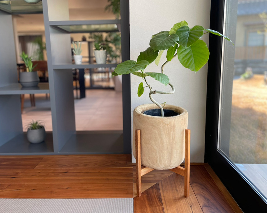 木製のプランターと木製のスタンド、とっても相性がいいです。
